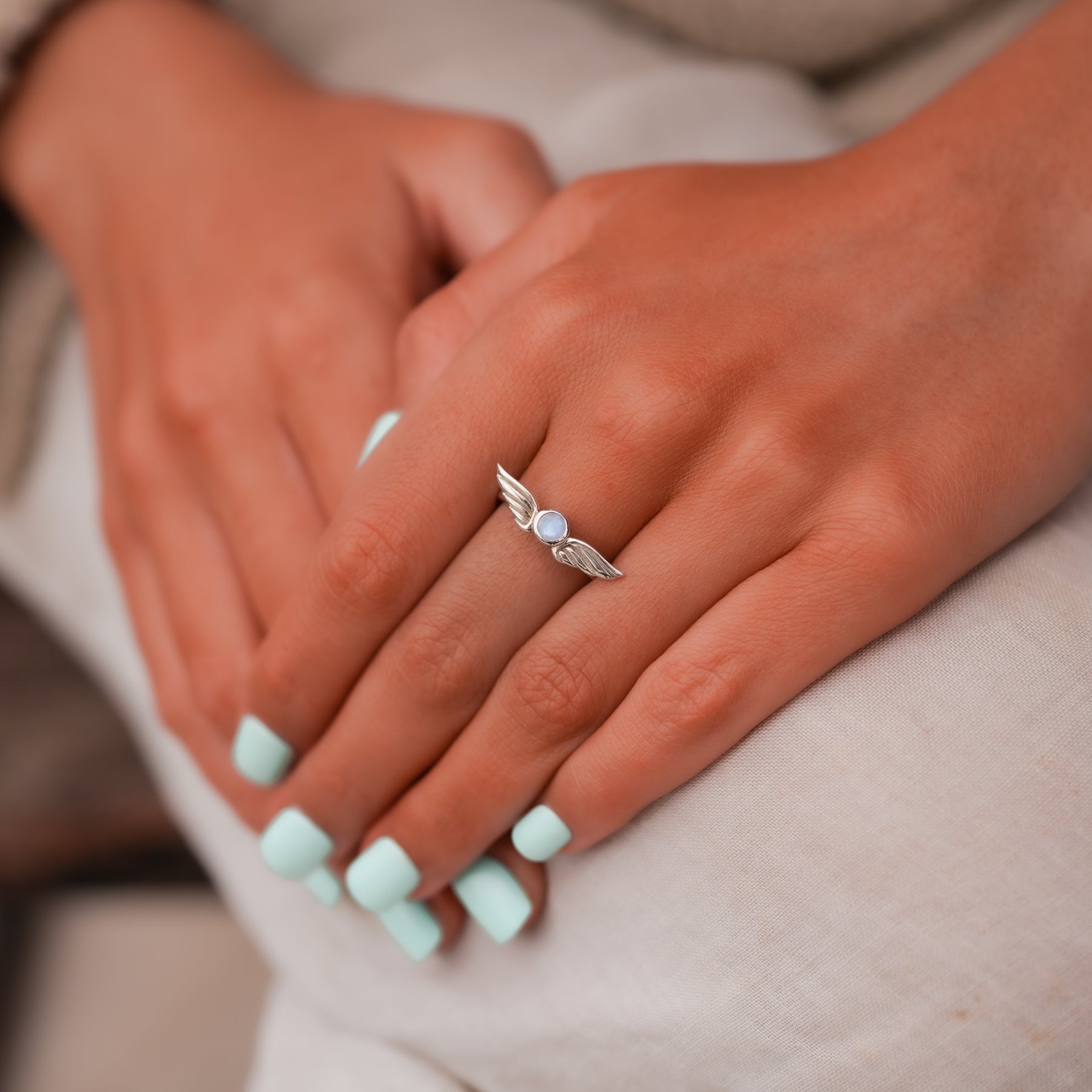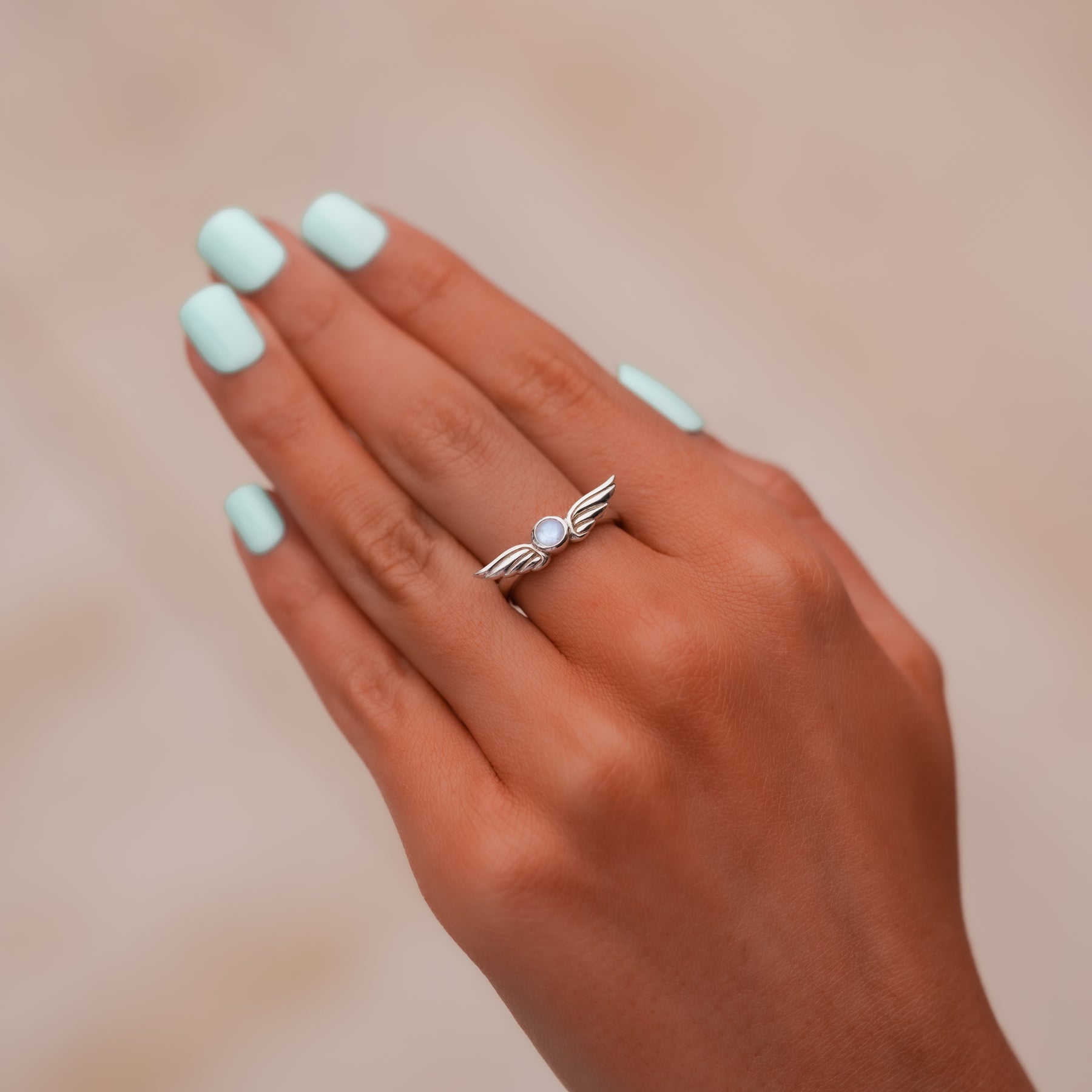 Anillo Alas de Ángel Piedra Luna Línea Premium