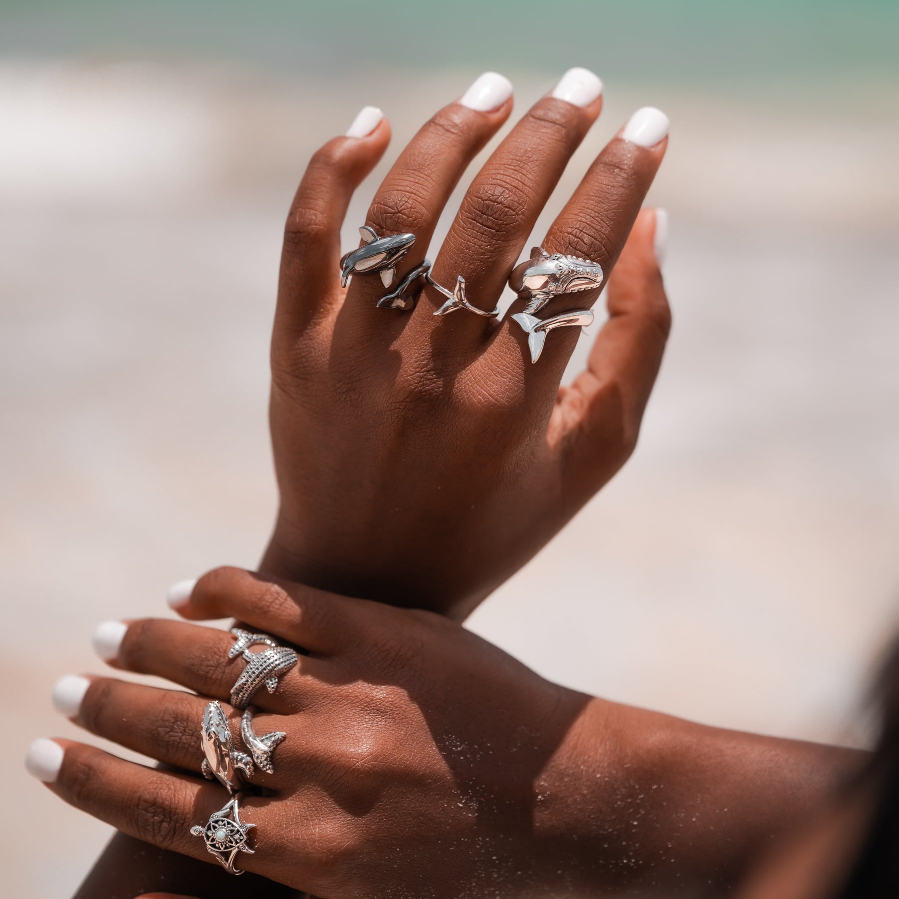 Sumérgete en la belleza del océano con nuestro exquisito anillo de ballenas franca austral de la línea premium. Inspirado en la gracia y la magnificencia de estos majestuosos mamíferos marinos, el anillo muestra un diseño elegante que simboliza la libertad y la conexión con el mar. Hecho con meticuloso atención al detalle en plata 925, esta pieza única de joyeria captura la esencia de la majestuosidad marina. Su encanto distintivo lo convertirá en una adición preciada a su colección, que representa la armonía entre la naturaleza y el arte.