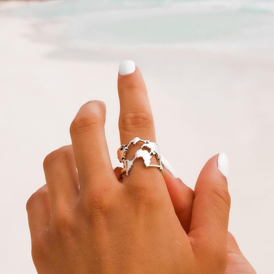 Abrace el espíritu de la pasión por los viajes globales con este anillo de continentes de línea premium. Meticulosamente elaborado, este anillo presenta un diseño cautivador que muestra los continentes del mundo. Cada continente es intrincadamente detallado, capturando la esencia de viajes y exploración. Con su calidad premium y artesanía exquisita, este anillo de continentes es un accesorio perfecto