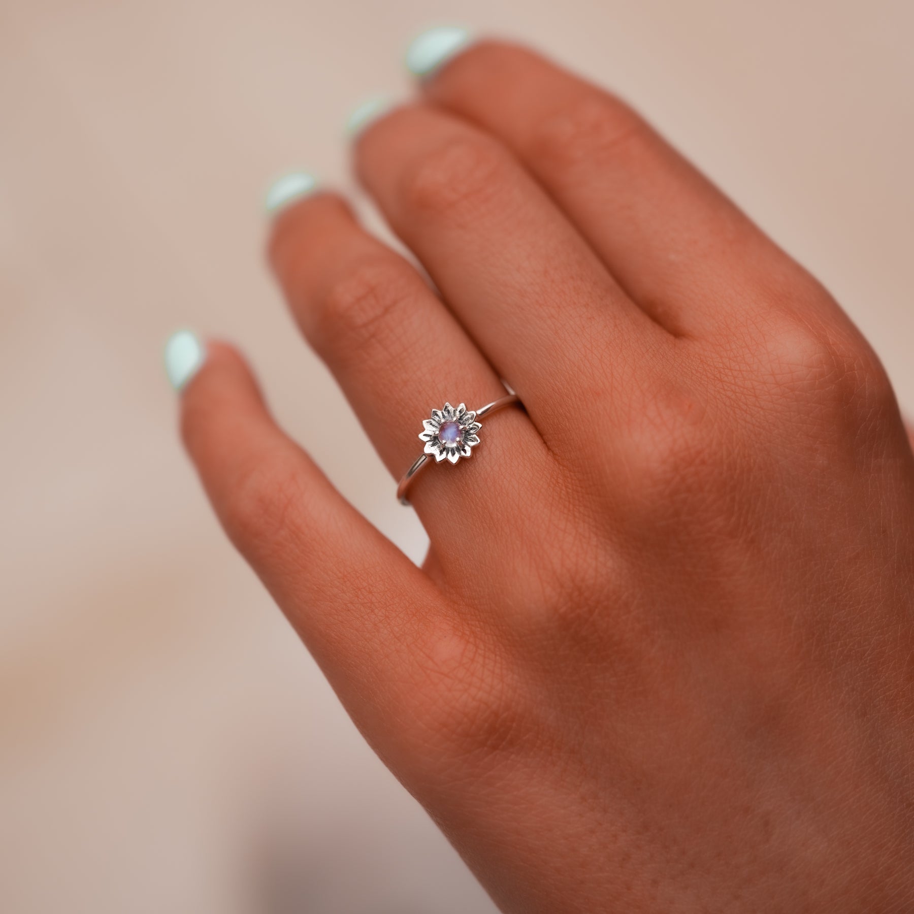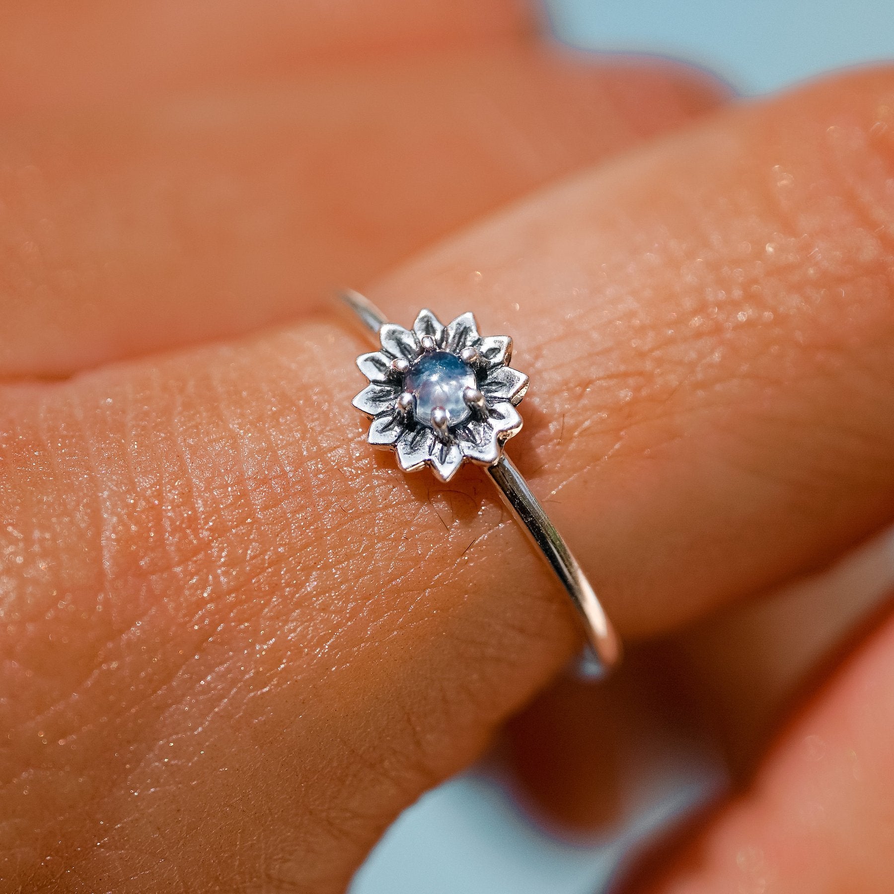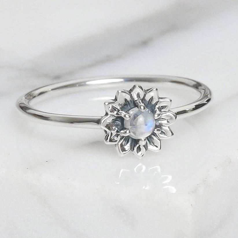 Experimente la encantadora belleza de la naturaleza con nuestro anillo de plata 925 con un cautivador diseño de girasol adornado con un centro de piedra lunar. El girasol simboliza la alegría, la positividad y la vitalidad, mientras que la piedra lunar representa la intuición y el equilibrio emocional. Este anillo combina la elegancia del girasol con el encanto místico de la piedra lunar, creando una pieza de joyería armoniosa y visualmente llamativa. Hecho a mano con plata 925 esterlina, muestra detalles intrincados que dan vida al girasol.