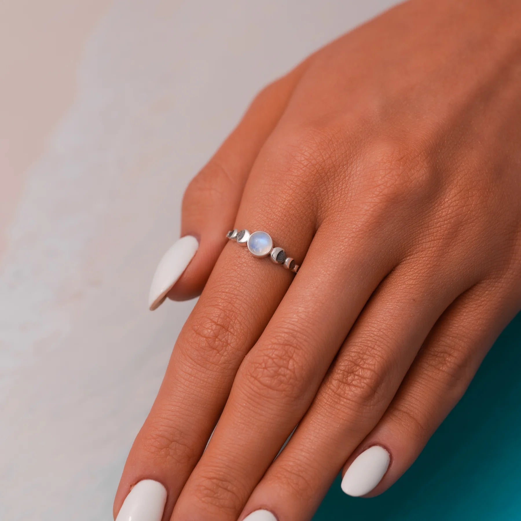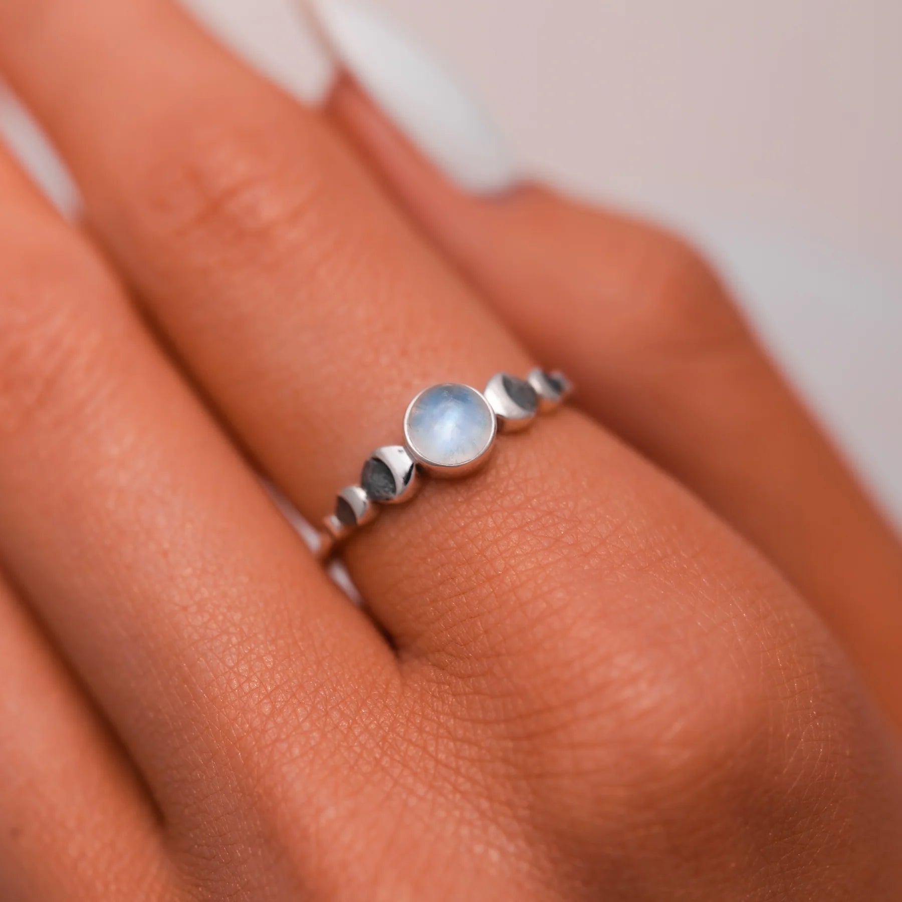 Anillo Majestuoso Ciclo Lunar Piedra Luna Línea Premium