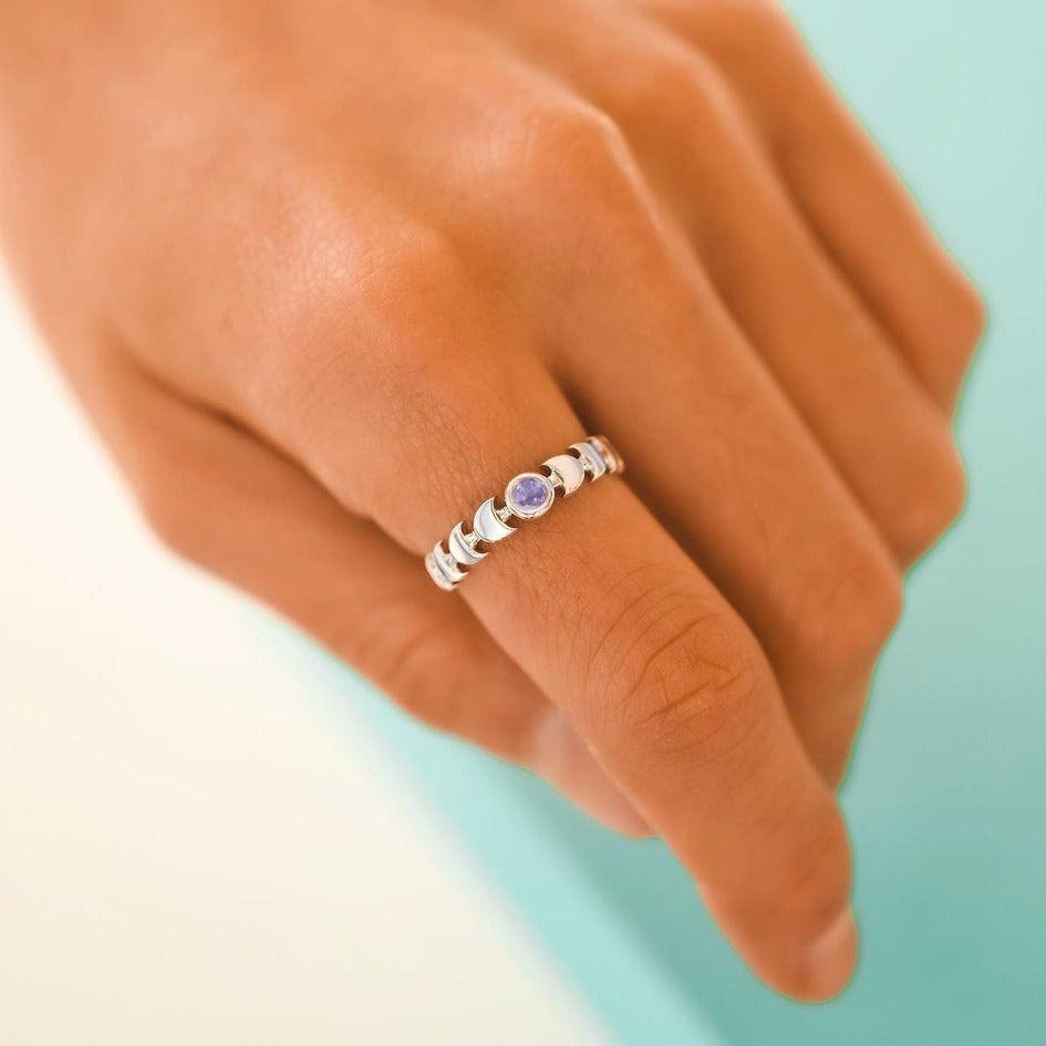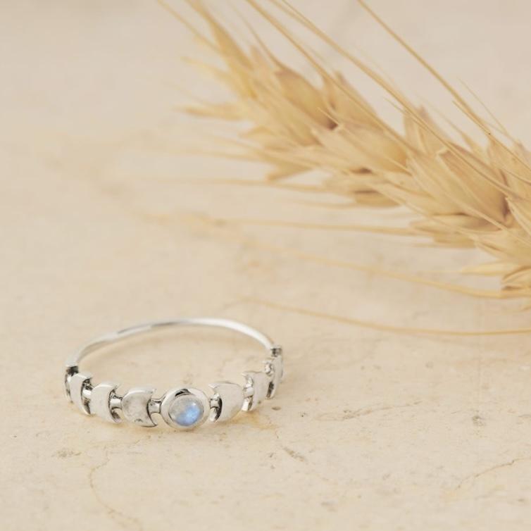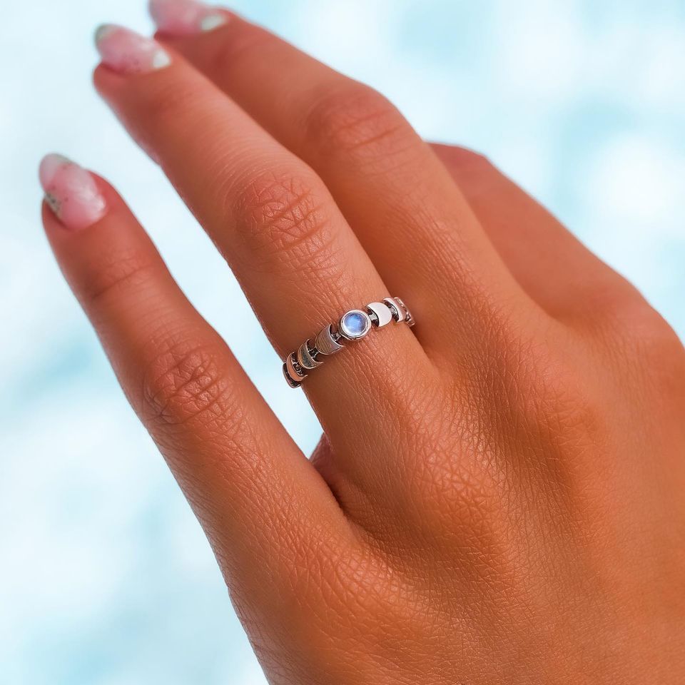 Experimente la encantadora belleza de la luna con nuestro cautivador anillo de plata 925 adornado con múltiples piedras de luna. El diseño celestial captura el encanto místico de la energía lunar y la conexión cósmica que representa. Hecho a mano con plata 925 esterlina, este anillo combina estilo bohemio e inspiración espiritual, por lo que es un complemento perfecto para su moda contemporánea. Cada piedra lunar irradia un brillo etéreo único, creando un efecto fascinante.