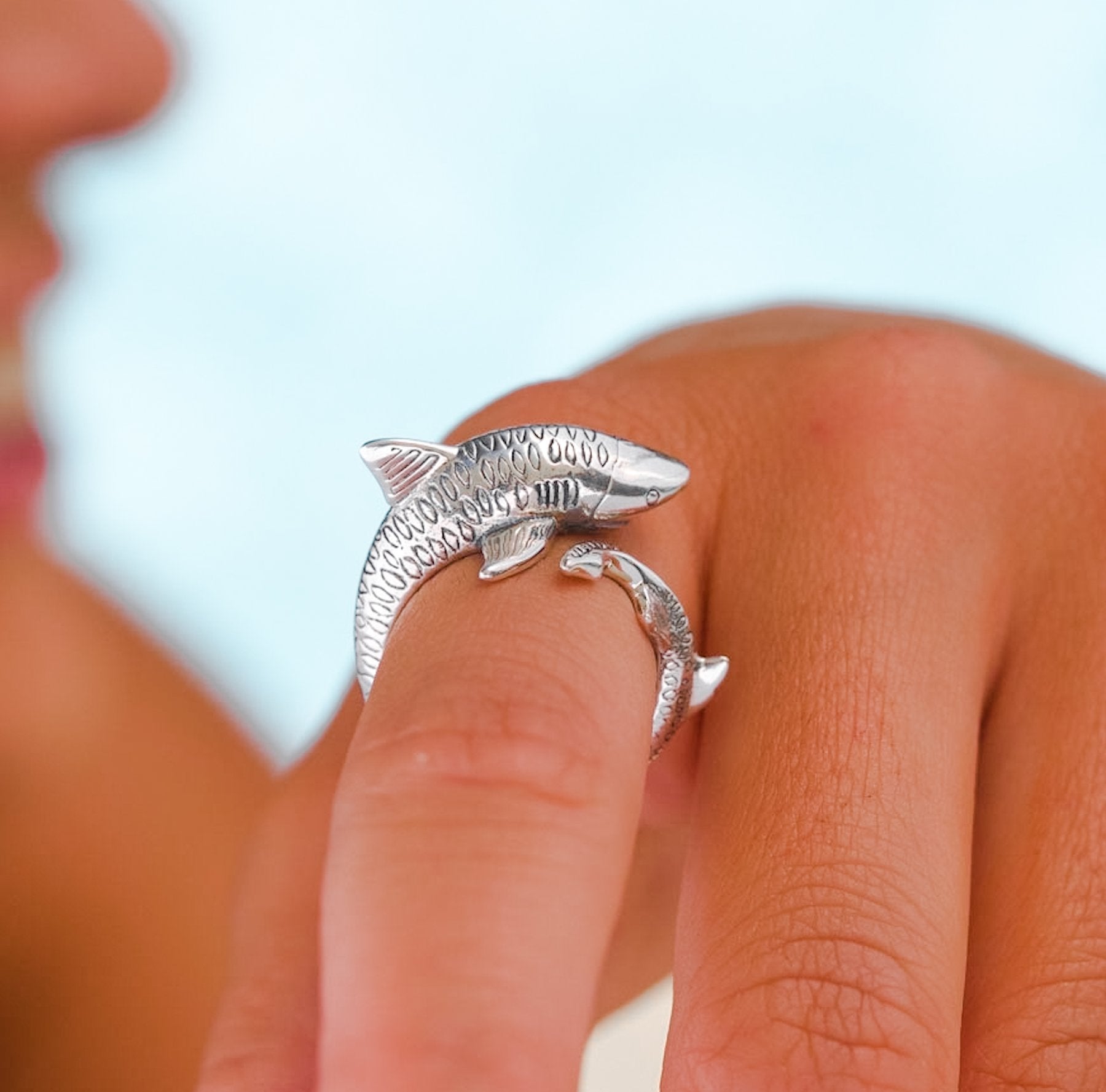 Canaliza el poder y la gracia del tiburón tigre con nuestro fascinante anillo de tiburones tigre de la línea premium. Inspirado en la majestuosidad de la vida marina, este anillo presenta un diseño marino que captura la esencia y la elegancia acuática. Hecho a mano con una atención meticulosa al detalle en plata 925, cada anillo es una pieza única, que muestra el encanto fascinante del tiburón tigre. El estilo exquisito del anillo lo convierte en una adición cautivadora a cualquier colección de joyas.