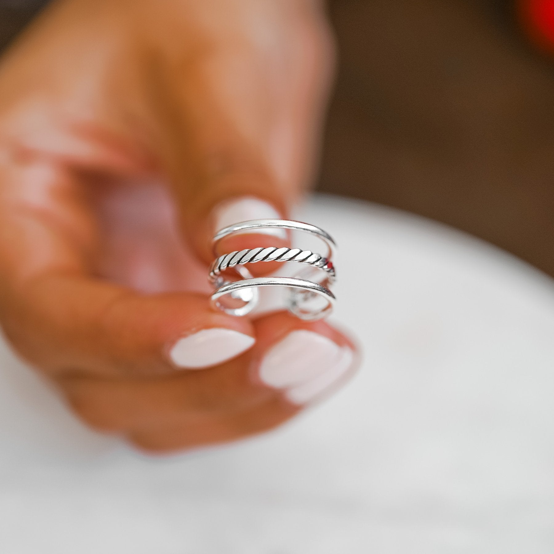 Con respecto a los Anillos Bali, siempre es bueno considerar media o una talla más.