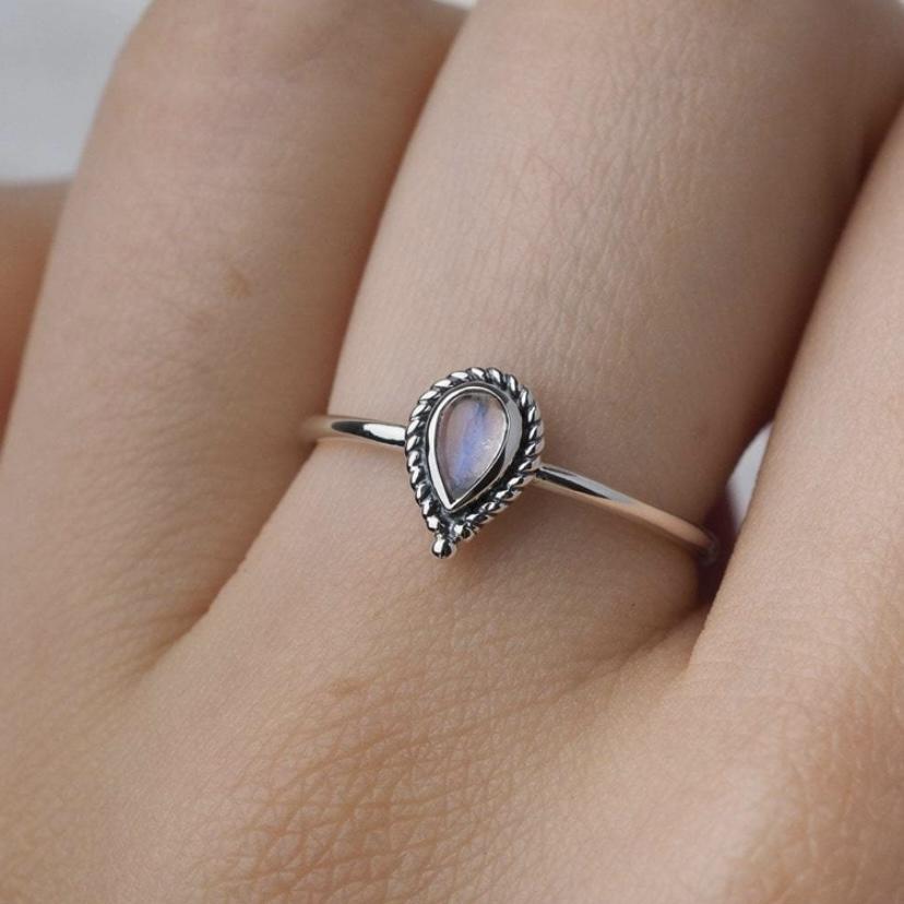 Descubra nuestro hermoso anillo de "gotita de lluvia" con una cautivadora piedra de luna. Su diseño delicado y hecho a mano agrega un toque único y elegante. Hecho a partir de plata 925 esterlina de alta calidad, este anillo es perfecto para usar en cualquier ocasión.