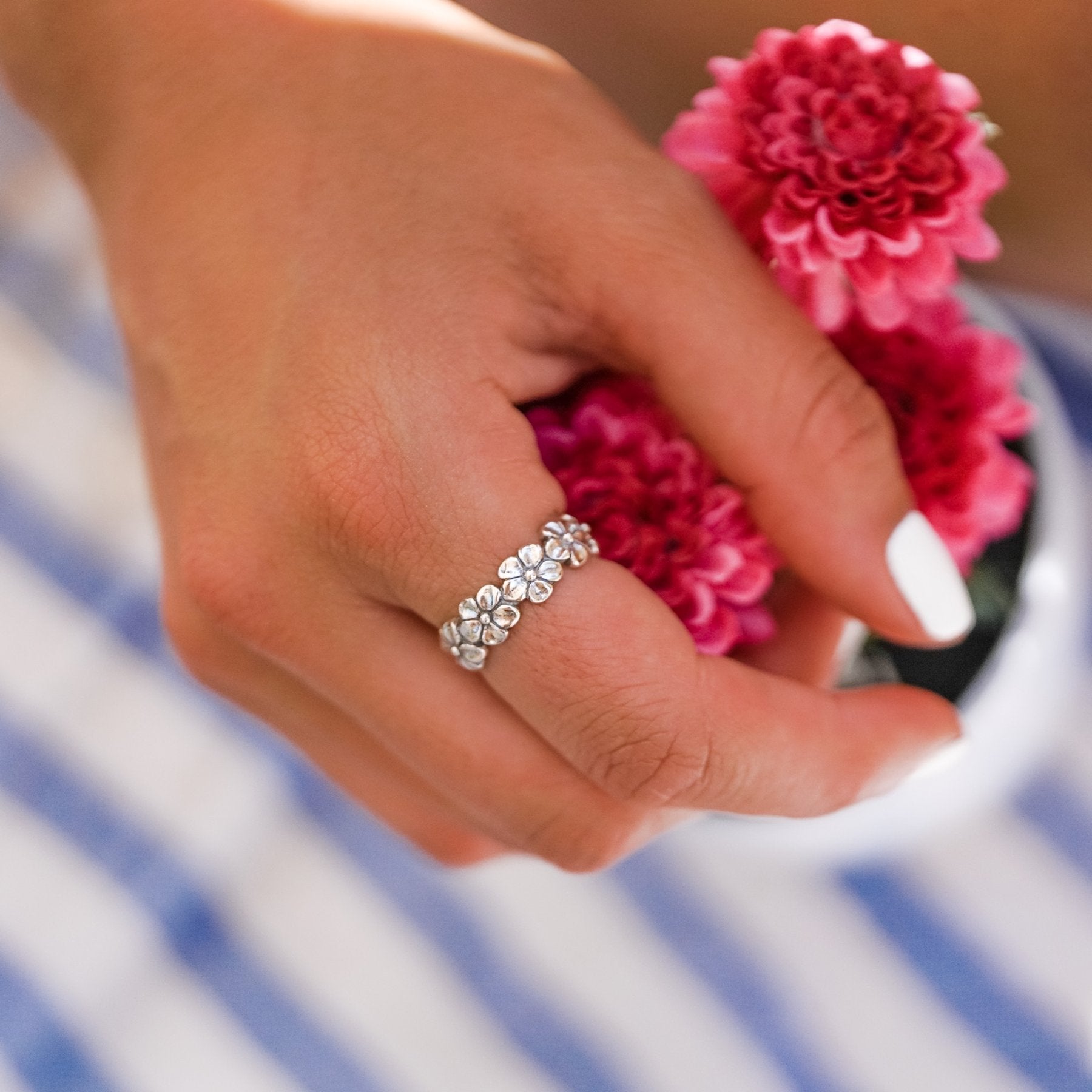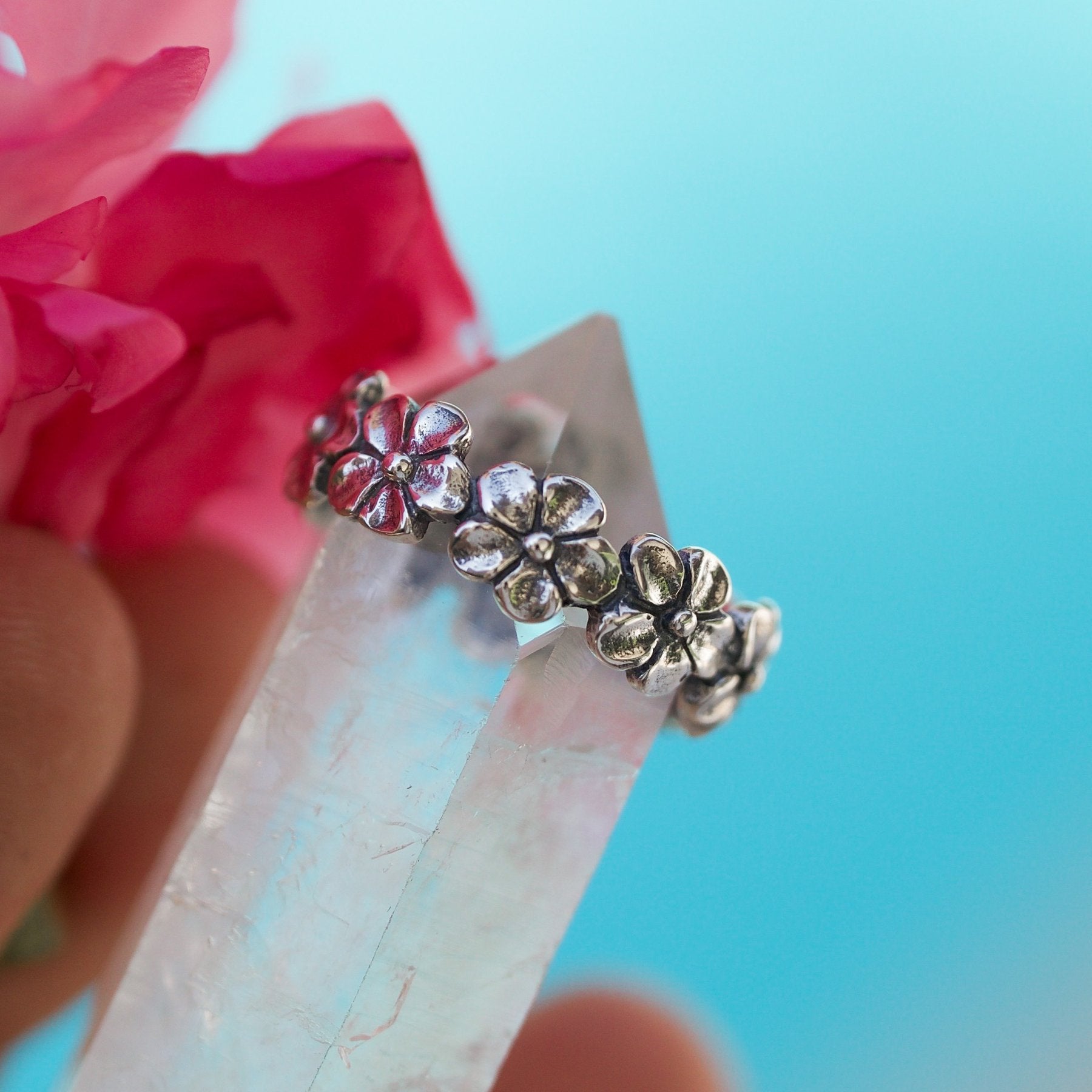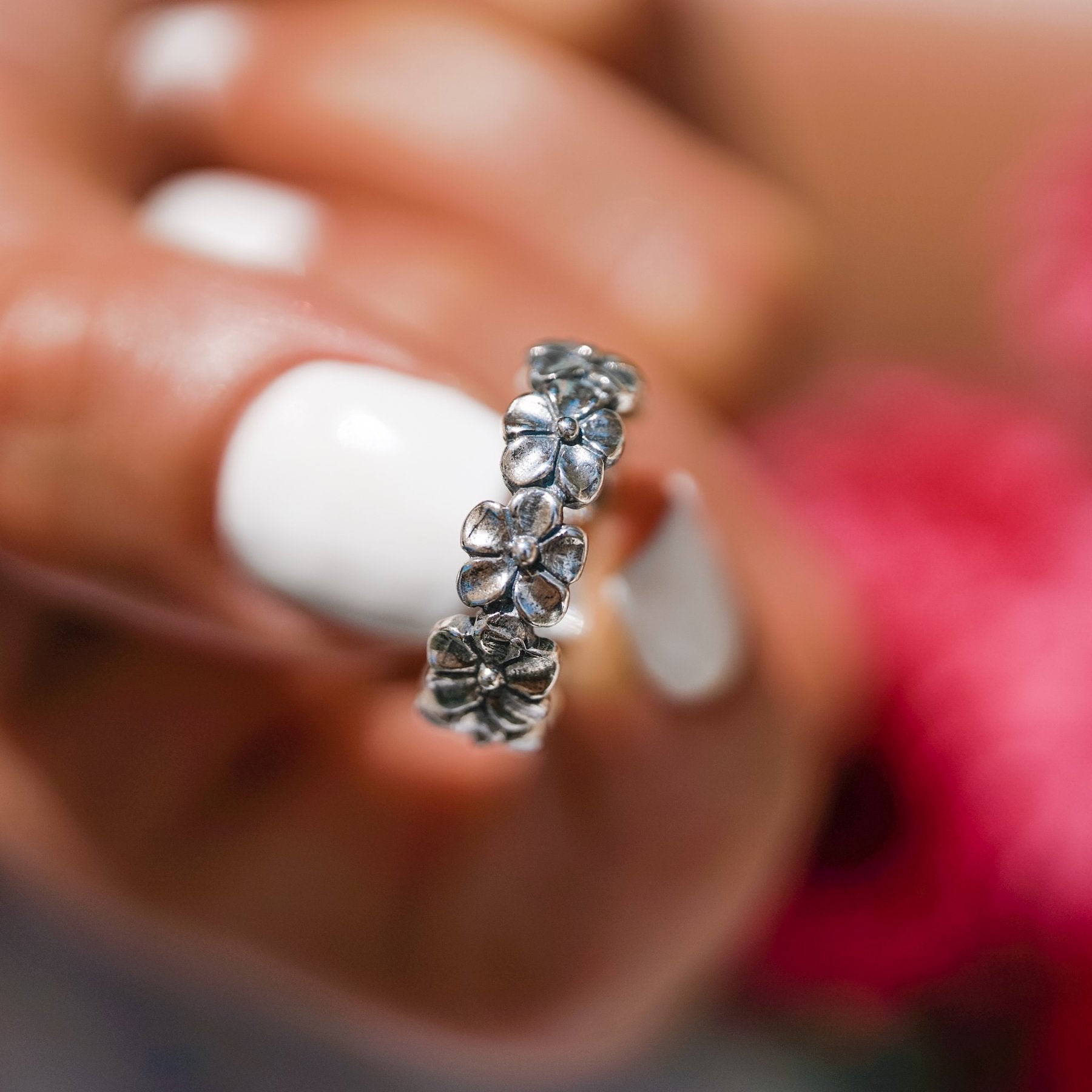 Anillo Cintillo de Flores es un anillo bellamente diseñado con un delicado diseño floral. Hecho con plata 925 esterlina, este anillo exuda elegancia y encanto. Es un regalo significativo y especial para usted o un ser querido, simbolizando las maravillas de la belleza y la naturaleza. Los intrincados detalles del patrón floral agregan un toque de sofisticación a cualquier atuendo, lo que lo convierte en un accesorio versátil y apreciado.