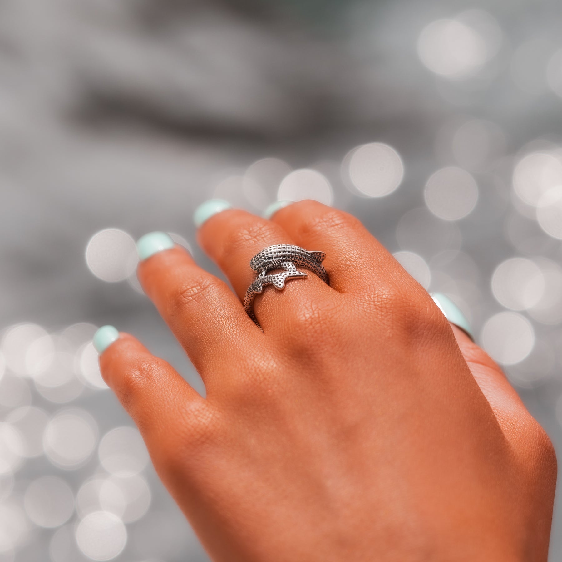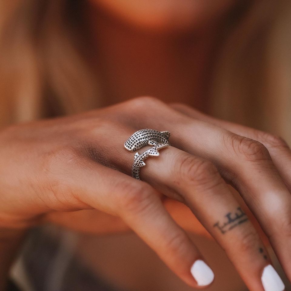 Sumérgete en las profundidades del océano con nuestro fascinante anillo de tiburones ballenas. Esta joyería inspirada en el mar captura la gracia y la majestad del gentil gigante, el tiburón ballena. Hecho a mano con una atención meticulosa al detalle, el anillo muestra las intrincadas características de esta magnífica criatura marina. El diseño elegante y único del anillo lo convierte en una pieza de joyería destacada que cautivará admiradores.